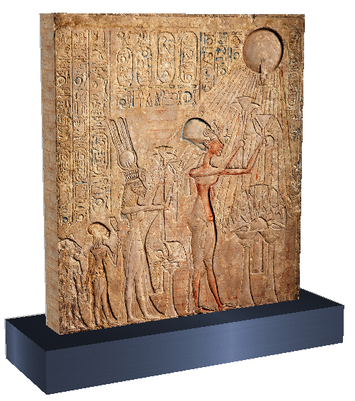 Este relieve se encuentra en el Museo Egipcio de El Cairo y es una obra que refleja el cambio radical que Akenatón introdujo en Egipto al abandonar el culto a los múltiples dioses en favor del monoteísmo, centrado en el disco solar, Atón. La escena muestra al faraón Akenatón, su esposa Nefertiti, y dos de sus hijas recibiendo los rayos del sol, que terminan en pequeñas manos que otorgan vida a la familia real.